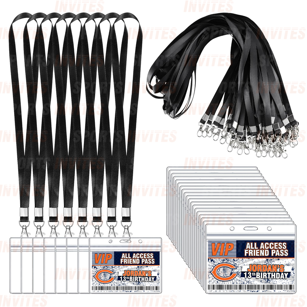 Chicago Bears Lanyards with Custom Sports Event Id Holder, Clear Plastic Horizontal Name Tags Holders and Black Badge Lanyards with ID Holder for Birthdays Tailgating Baby Shower Easily Identify your guest with these Sports Party Id Lanyards (Black)