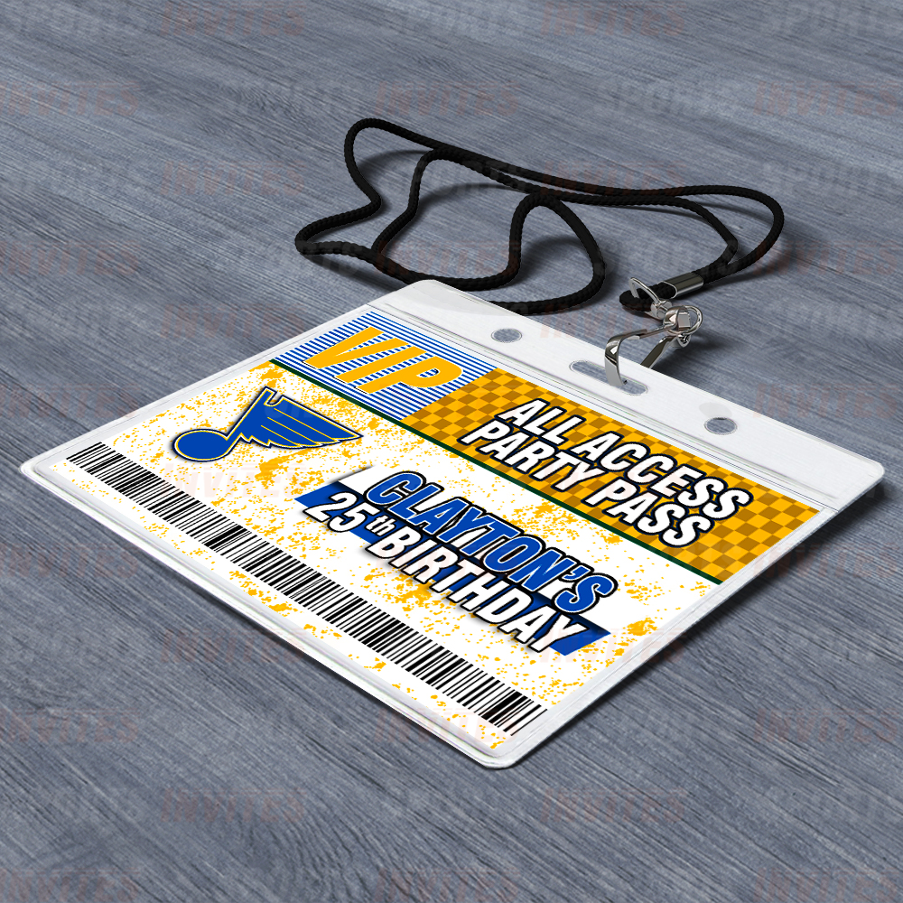 St. Louis Blues Lanyards with Custom Sports Event Id Holder, Clear Plastic Horizontal Name Tags Holders and Black Badge Lanyards with ID Holder for Birthdays Tailgating Baby Shower Easily Identify your guest with these Sports Party Id Lanyards (Black)