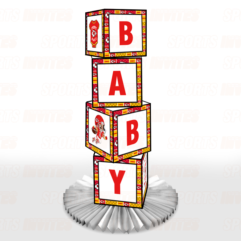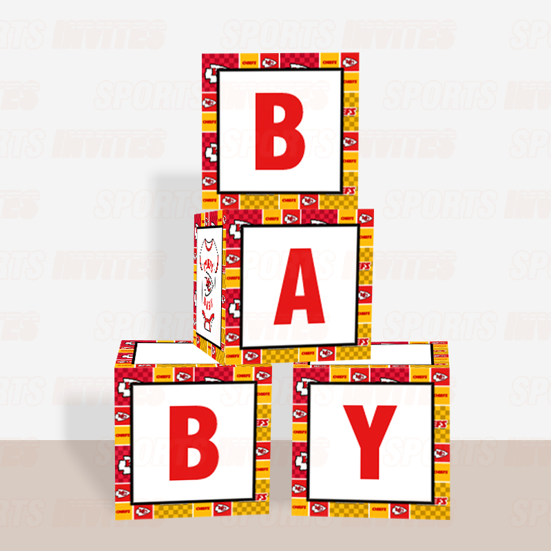 Kansas City Chiefs Baby Shower Table Top Boxes Party Decorations – 4 Blocks with BABY Letter, Centerpiece Decor, Gender Reveal