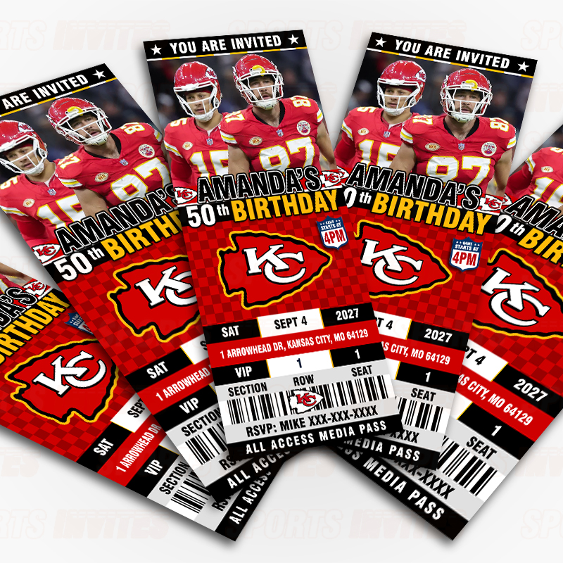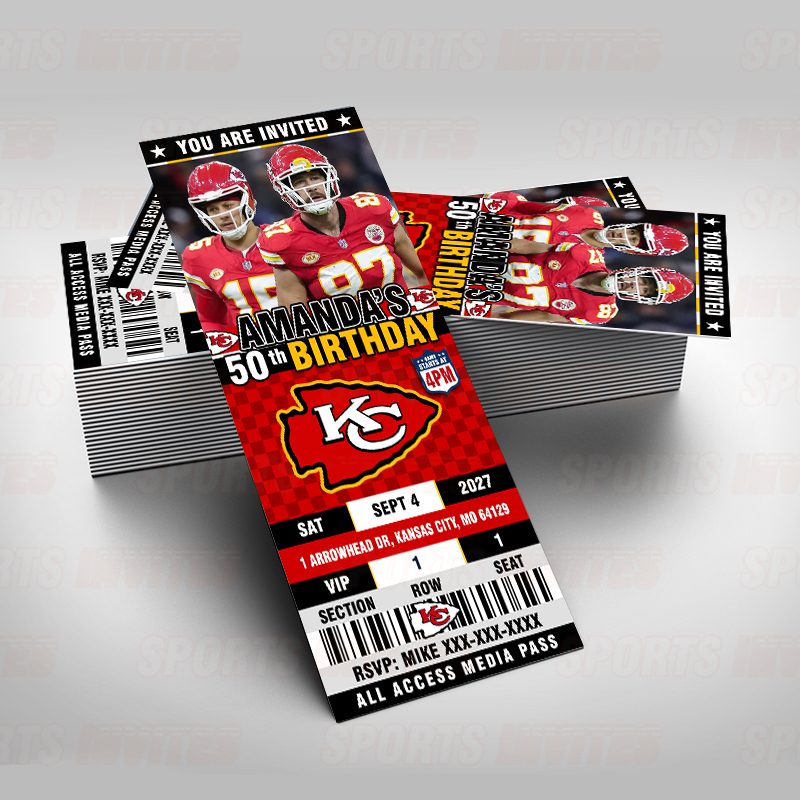Kansas City Chiefs Ticket Style Sports Party Invitations