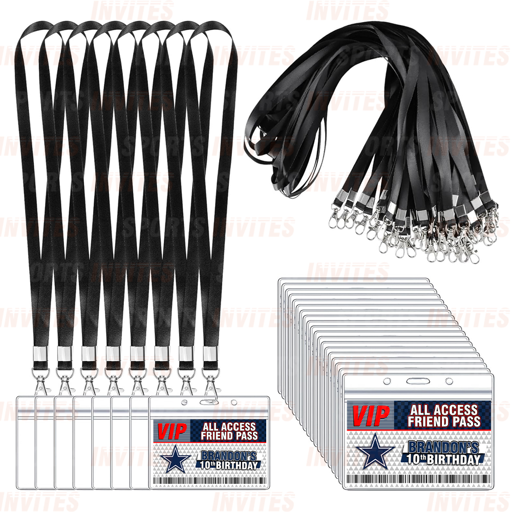 Dallas Cowboys Lanyards with Custom Sports Event Id Holder, Clear Plastic Horizontal Name Tags Holders and Black Badge Lanyards with ID Holder for Birthdays Tailgating Baby Shower Easily Identify your guest with these Sports Party Id Lanyards (Black)