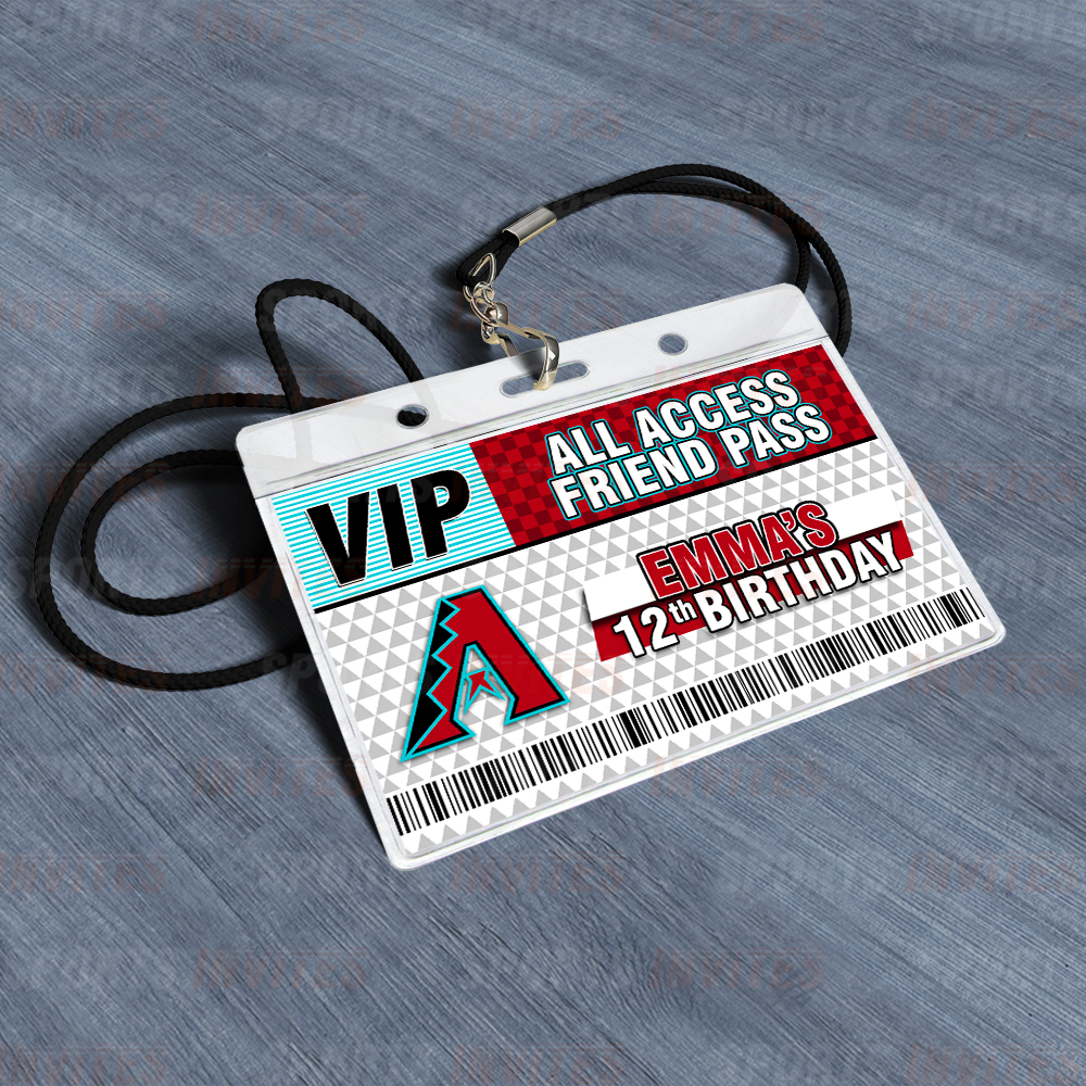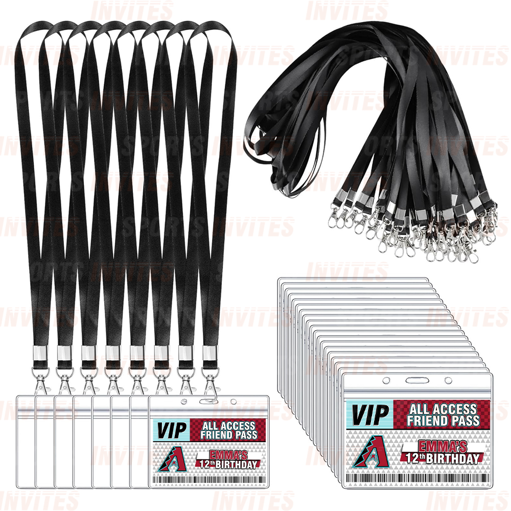 Arizona Diamondbacks Lanyards with Custom Sports Event Id Holder, Clear Plastic Horizontal Name Tags Holders and Black Badge Lanyards with ID Holder for Birthdays Tailgating Baby Shower Easily Identify your guest with these Sports Party Id Lanyards (Black)