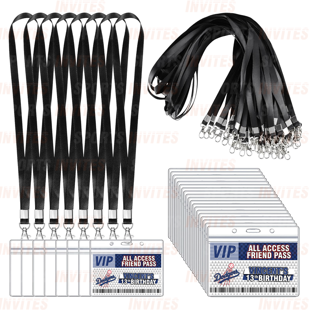 Los Angeles Dodgers Lanyards with Custom Sports Event Id Holder, Clear Plastic Horizontal Name Tags Holders and Black Badge Lanyards with ID Holder for Birthdays Tailgating Baby Shower Easily Identify your guest with these Sports Party Id Lanyards (Black)