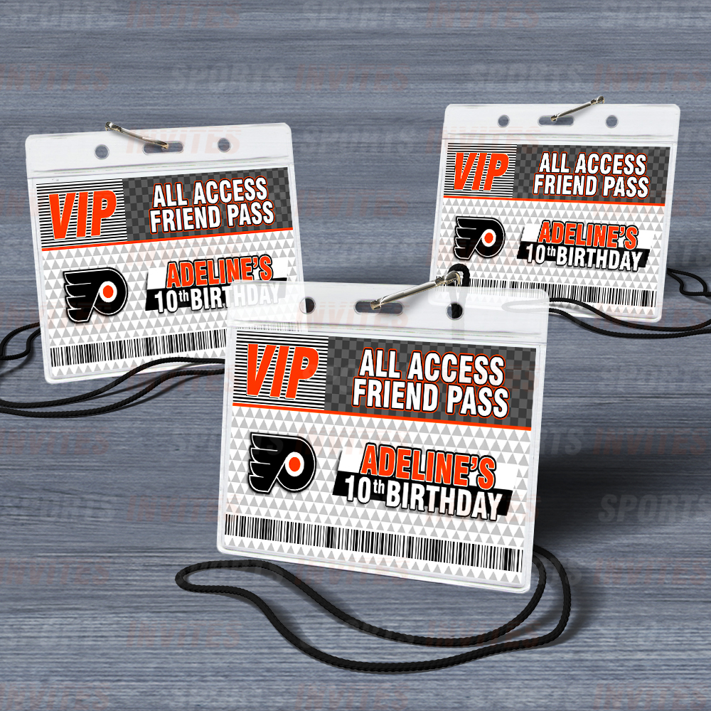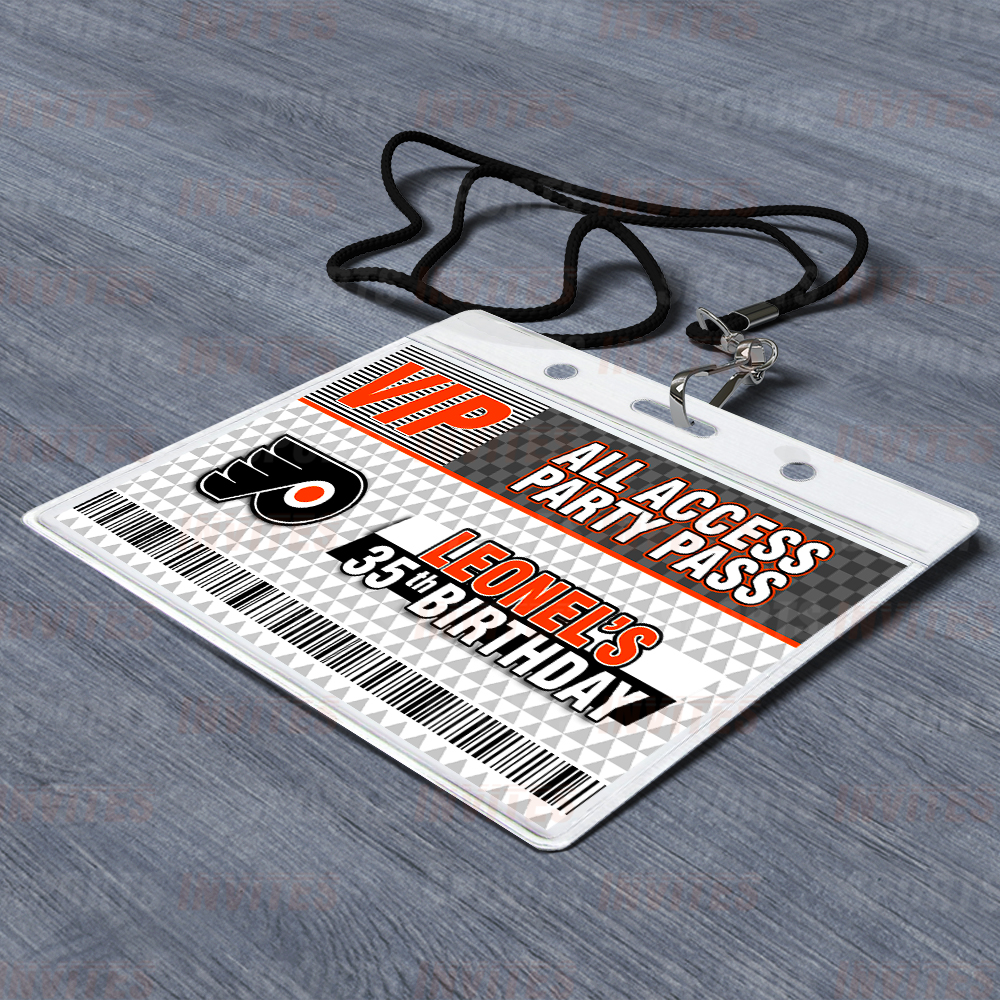 Philadelphia Flyers Lanyards with Custom Sports Event Id Holder, Clear Plastic Horizontal Name Tags Holders and Black Badge Lanyards with ID Holder for Birthdays Tailgating Baby Shower Easily Identify your guest with these Sports Party Id Lanyards (Black)