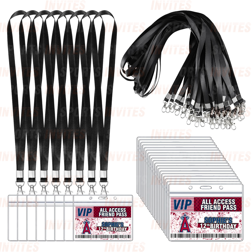 Los Angeles Angels Lanyards with Custom Sports Event Id Holder, Clear Plastic Horizontal Name Tags Holders and Black Badge Lanyards with ID Holder for Birthdays Tailgating Baby Shower Easily Identify your guest with these Sports Party Id Lanyards (Black)