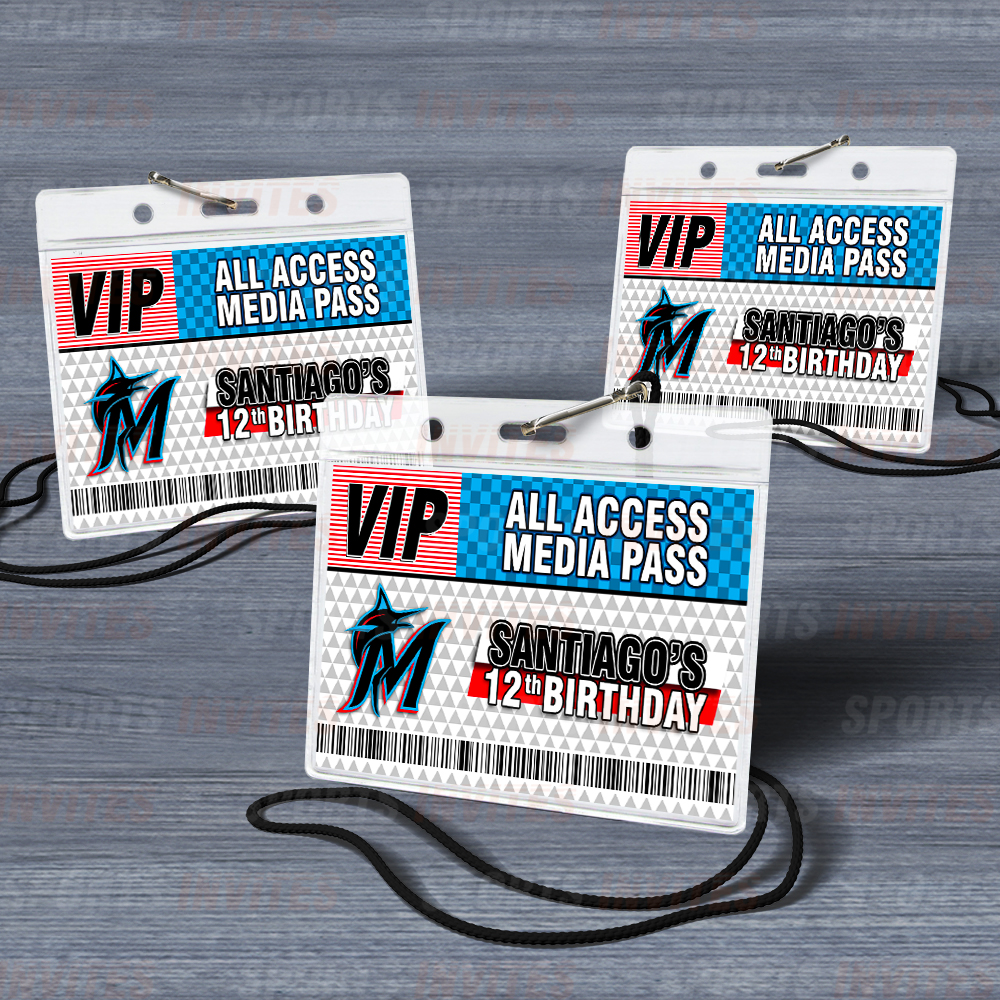 Miami Marlins Lanyards with Custom Sports Event Id Holder, Clear Plastic Horizontal Name Tags Holders and Black Badge Lanyards with ID Holder for Birthdays Tailgating Baby Shower Easily Identify your guest with these Sports Party Id Lanyards (Black)