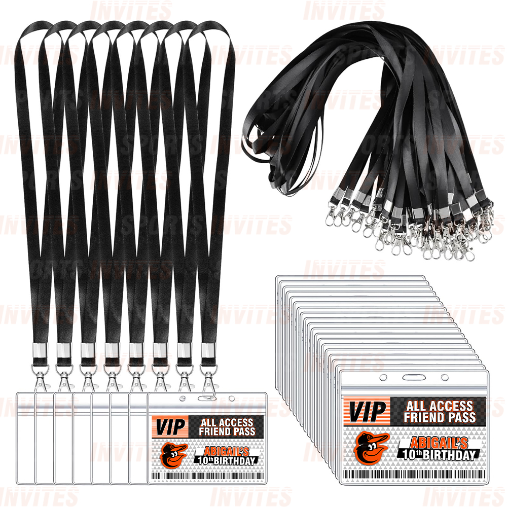 Baltimore Orioles Lanyards with Custom Sports Event Id Holder, Clear Plastic Horizontal Name Tags Holders and Black Badge Lanyards with ID Holder for Birthdays Tailgating Baby Shower Easily Identify your guest with these Sports Party Id Lanyards (Black)