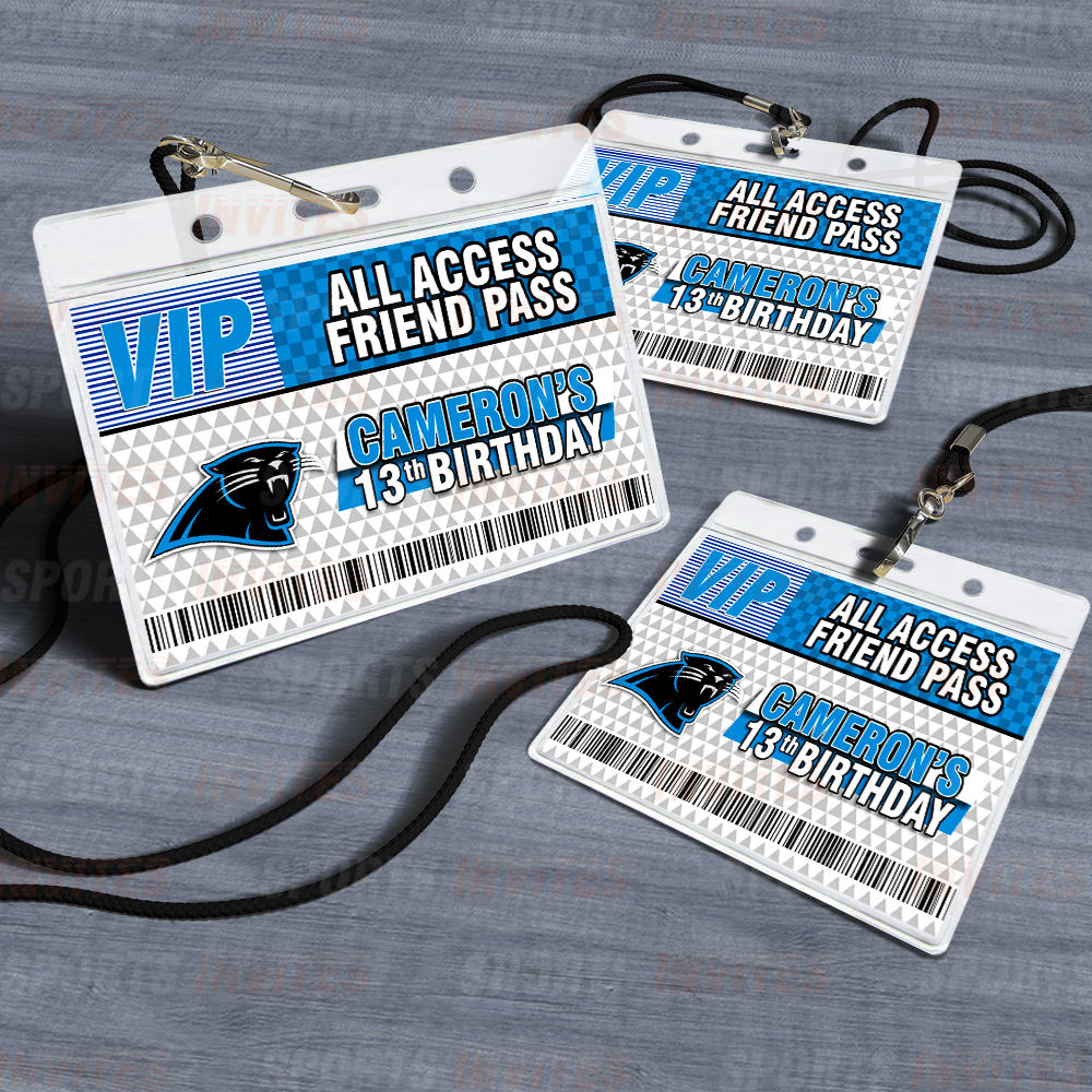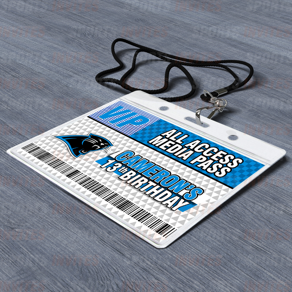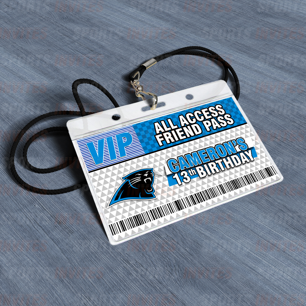 Carolina Panthers Lanyards with Custom Sports Event Id Holder, Clear Plastic Horizontal Name Tags Holders and Black Badge Lanyards with ID Holder for Birthdays Tailgating Baby Shower Easily Identify your guest with these Sports Party Id Lanyards (Black)