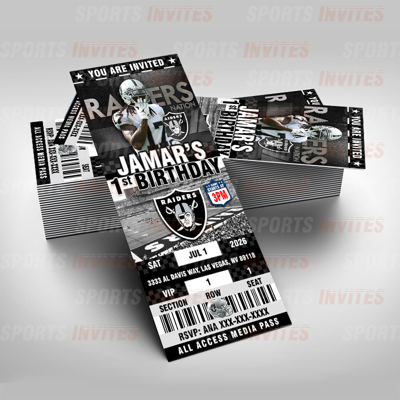 Las Vegas Raiders Ticket Style Sports Party Invitations