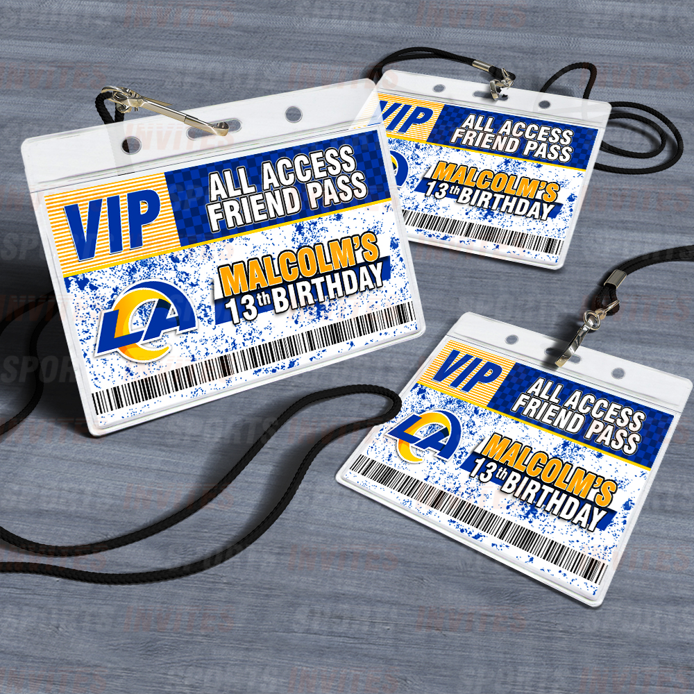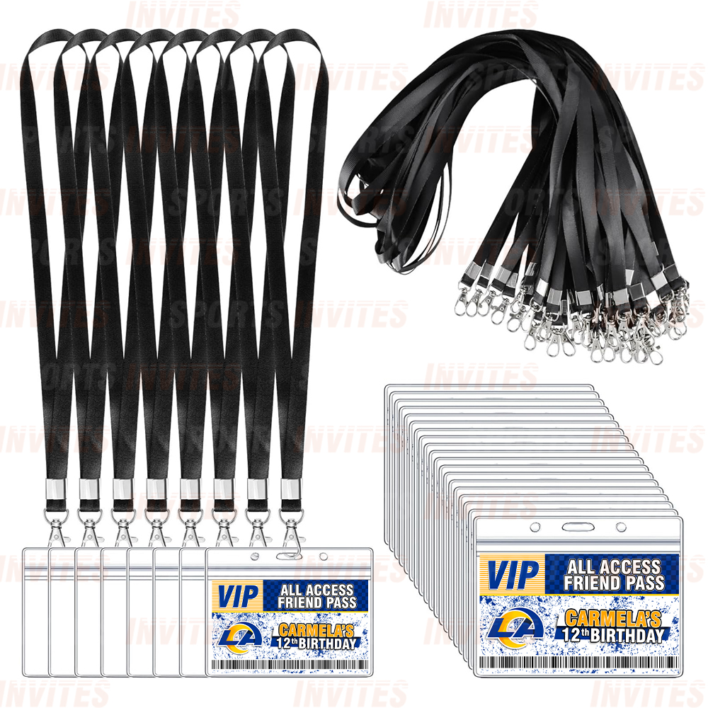 Los Angeles Rams Lanyards with Custom Sports Event Id Holder, Clear Plastic Horizontal Name Tags Holders and Black Badge Lanyards with ID Holder for Birthdays Tailgating Baby Shower Easily Identify your guest with these Sports Party Id Lanyards (Black)