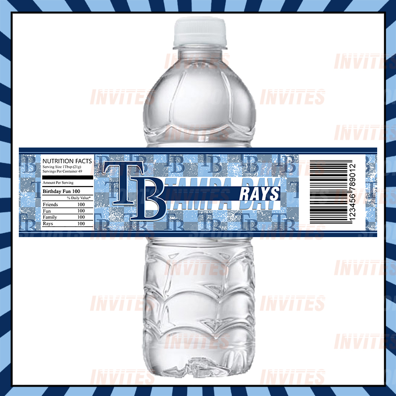 Tampa Bay Rays water bottle labels great for Sports Fans of all ages, Birthdays, Save-the-Date, Baby Shower or any Special Event. Each label 2.5×8” and fits 16.9 oz bottles. We are able to adjust the size for mini bottles, beer bottles, etc.