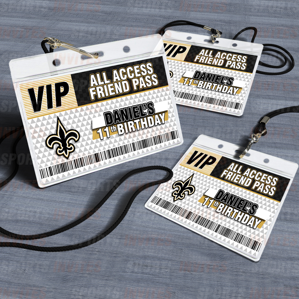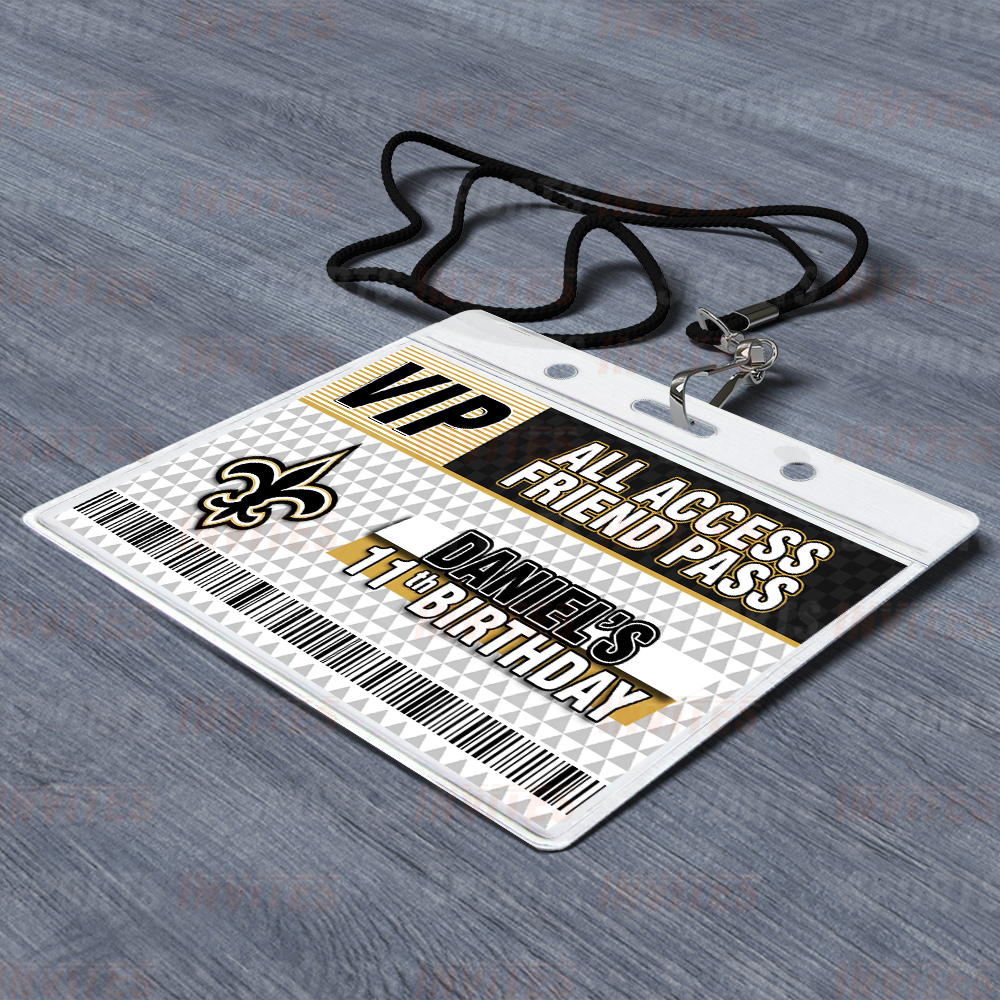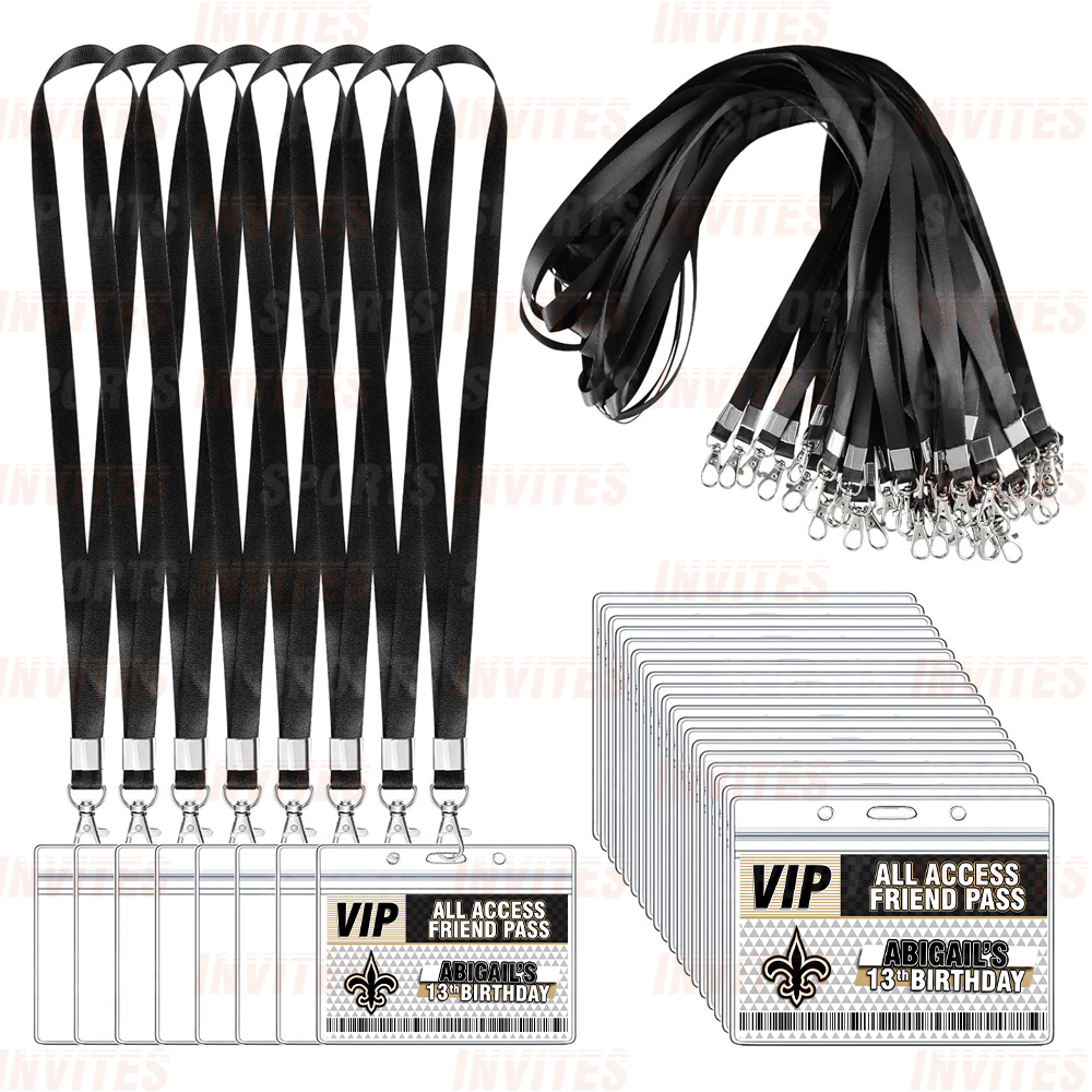 New Orleans Saints Lanyards with Custom Sports Event Id Holder, Clear Plastic Horizontal Name Tags Holders and Black Badge Lanyards with ID Holder for Birthdays Tailgating Baby Shower Easily Identify your guest with these Sports Party Id Lanyards (Black)