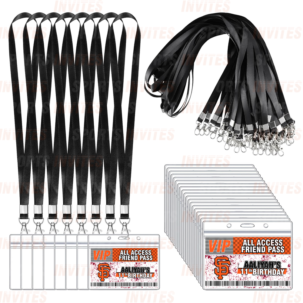 San Francisco Giants Lanyards with Custom Sports Event Id Holder, Clear Plastic Horizontal Name Tags Holders and Black Badge Lanyards with ID Holder for Birthdays Tailgating Baby Shower Easily Identify your guest with these Sports Party Id Lanyards (Black)
