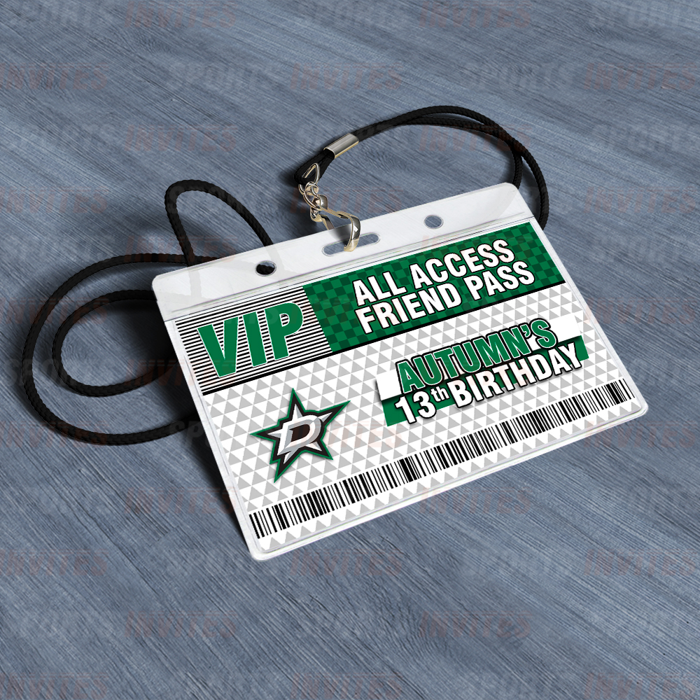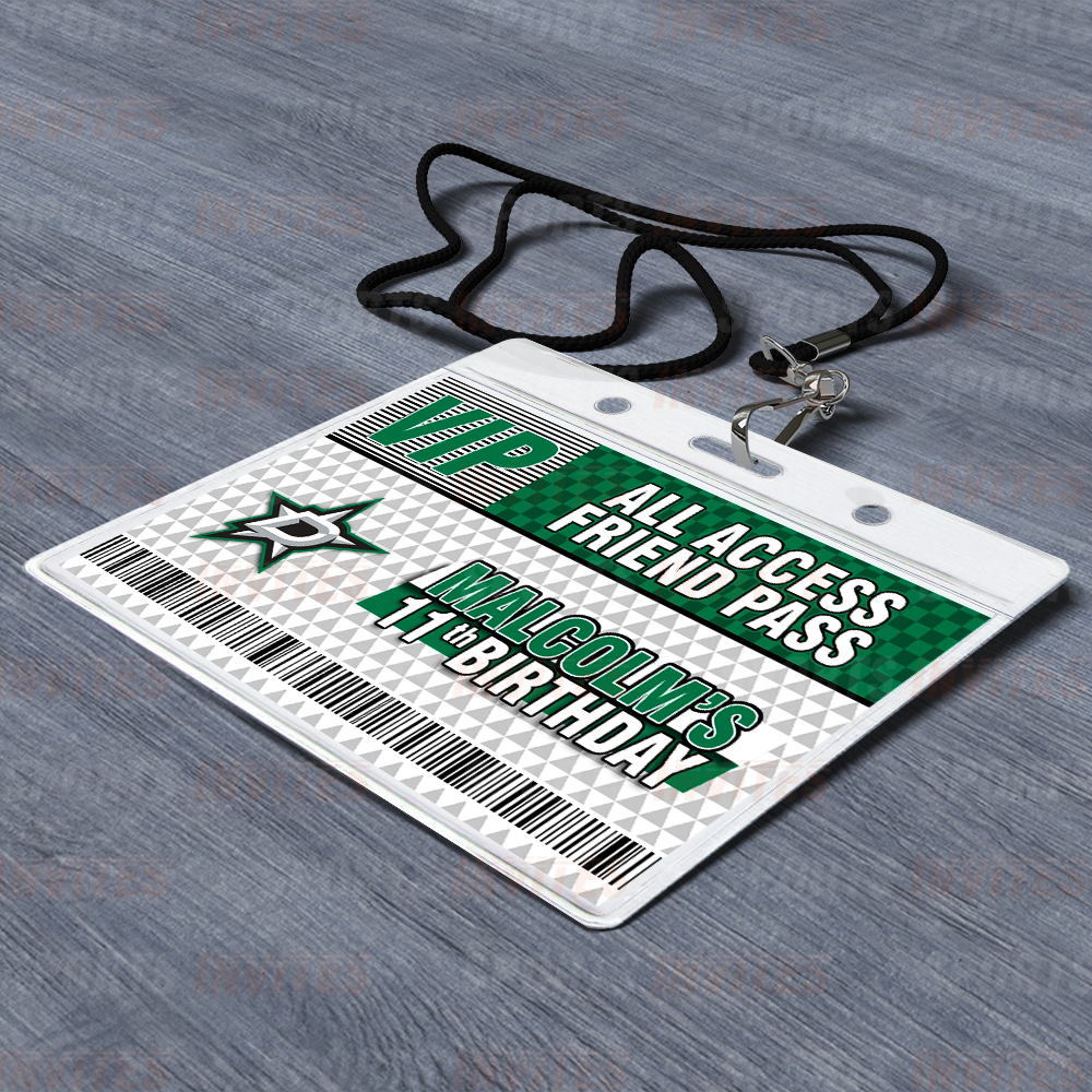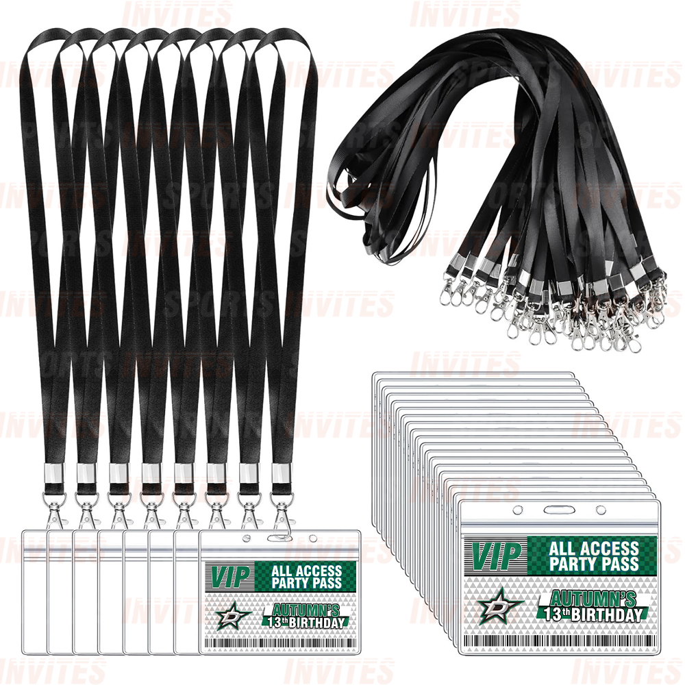 Dallas Stars Lanyards with Custom Sports Event Id Holder, Clear Plastic Horizontal Name Tags Holders and Black Badge Lanyards with ID Holder for Birthdays Tailgating Baby Shower Easily Identify your guest with these Sports Party Id Lanyards (Black)
