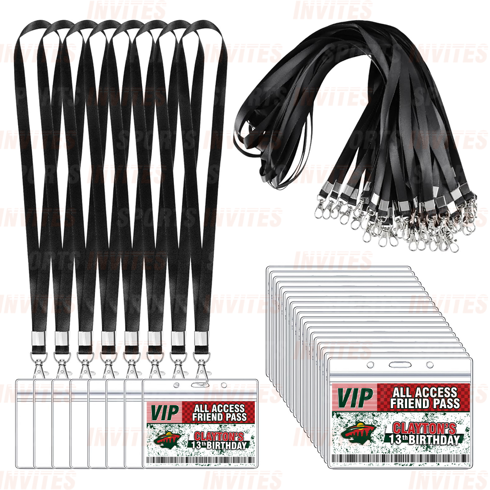 Minnesota Wild Lanyards with Custom Sports Event Id Holder, Clear Plastic Horizontal Name Tags Holders and Black Badge Lanyards with ID Holder for Birthdays Tailgating Baby Shower Easily Identify your guest with these Sports Party Id Lanyards (Black)